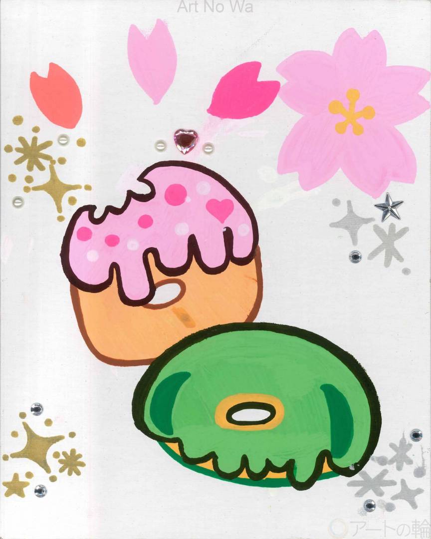 初めてポスカで描いてみました。 今回は、春のお花見 ドーナツを描いてみました。