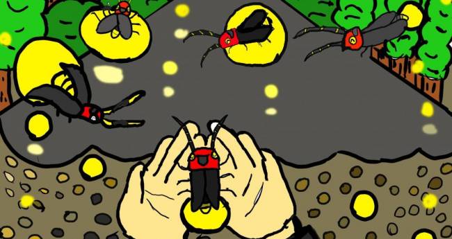 綺麗な川辺で蛍が飛んでいる所をイラストにしました。僕、たつきさんたくは本物の蛍を見たことがありません。僕のように生の蛍を見たことがない人は多くなっているんじゃないかなと思いまず。せめてイラストで蛍の幻想的なイラストが表現出来て入れればなと思います