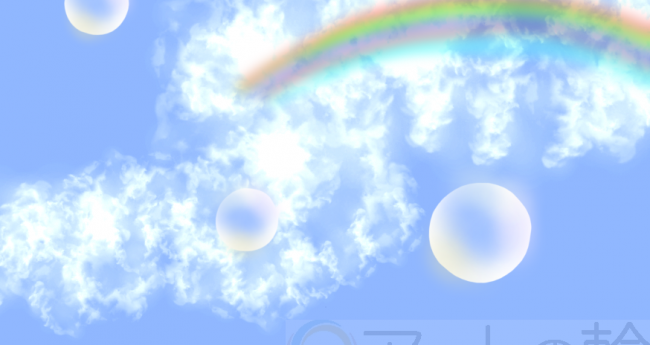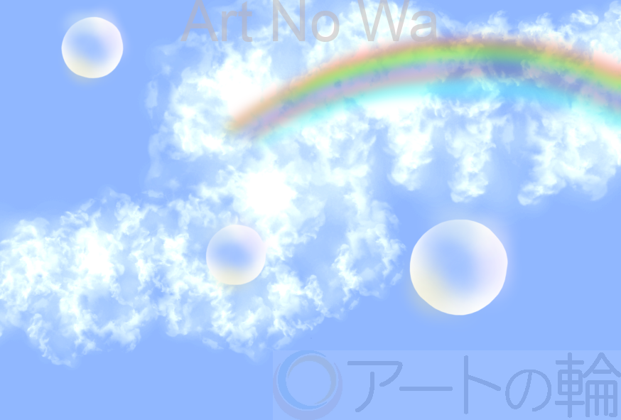 シャボン玉と空の絵です