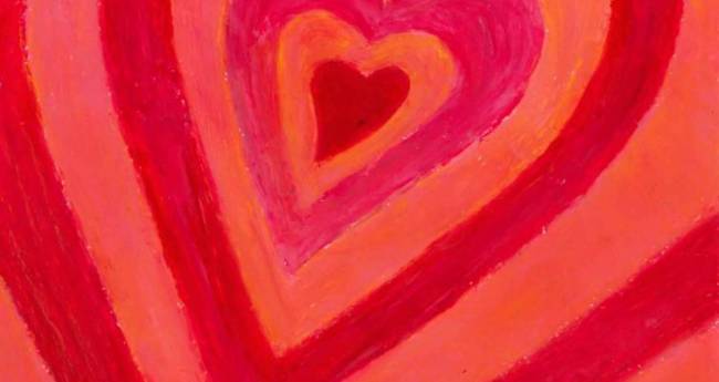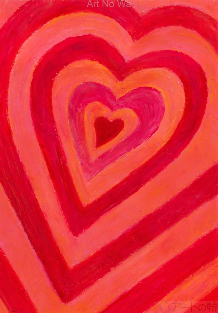 ハートを沢山重ねて描いて、無限に繋がる愛を表現しました。たくさん色を混ぜて、不思議な雰囲気になるように工夫しました。