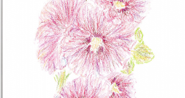 クレヨンのみで風景画、静物画、名画模写などを描いています。 作品によっては鉛筆を使用しています。