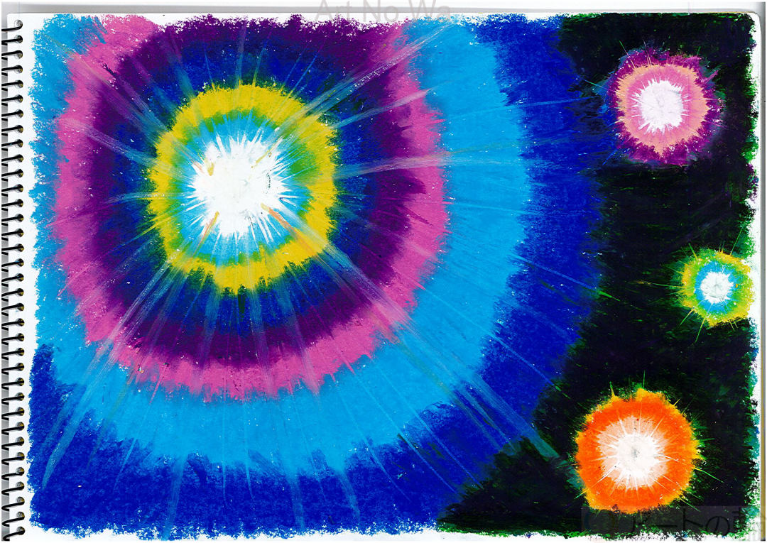 クレヨンのみで風景画、静物画、名画模写などを描いています。 作品によっては鉛筆を使用しています。