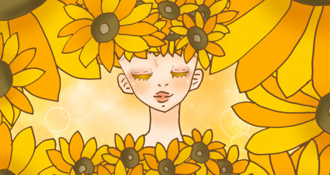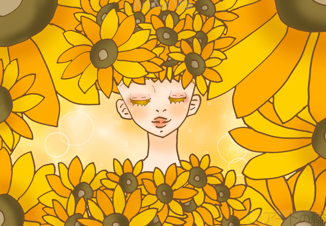 太陽からの無限なエネルギーで自分の中に秘めてた才能が開花して幸せに包まれてる感じに描いてみました。