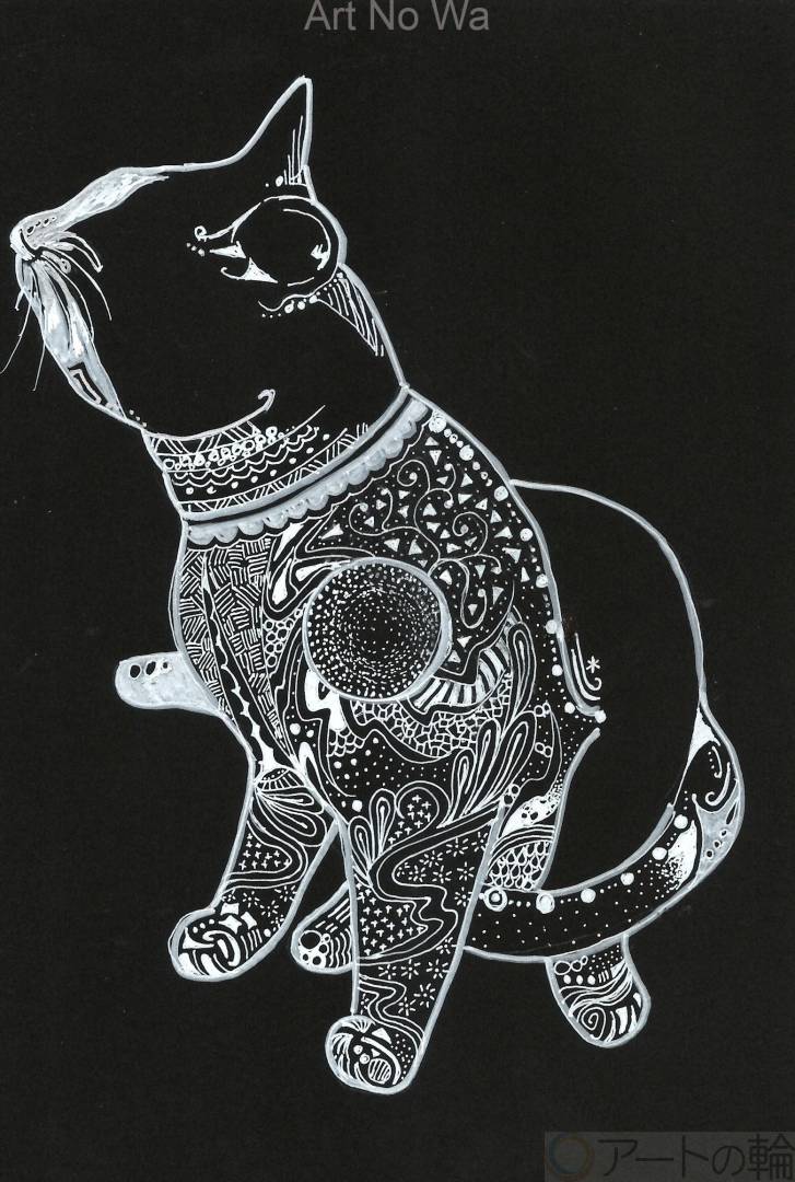 ハチワレ猫の絵です。気持ちよさそうなところ。