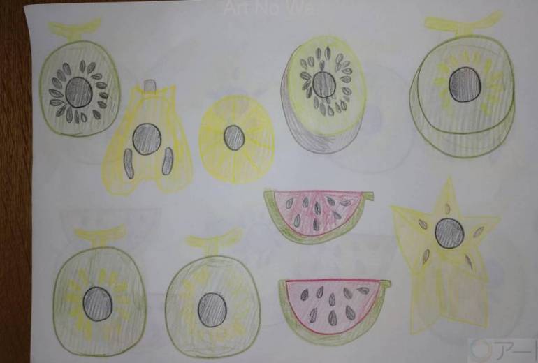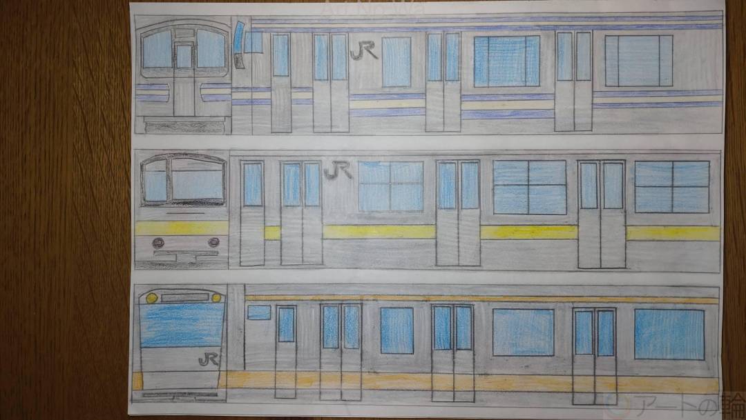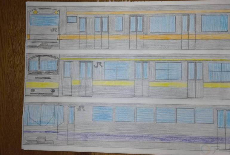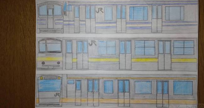 電車のお菓子模型を見て描きました。