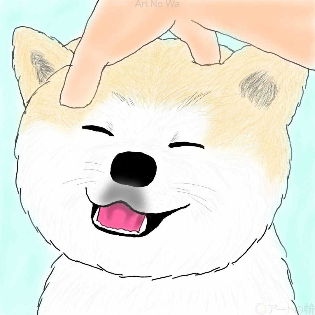 飼い主さんに頭を撫でてもらって嬉しい秋田犬を描きました。