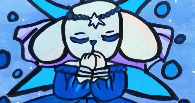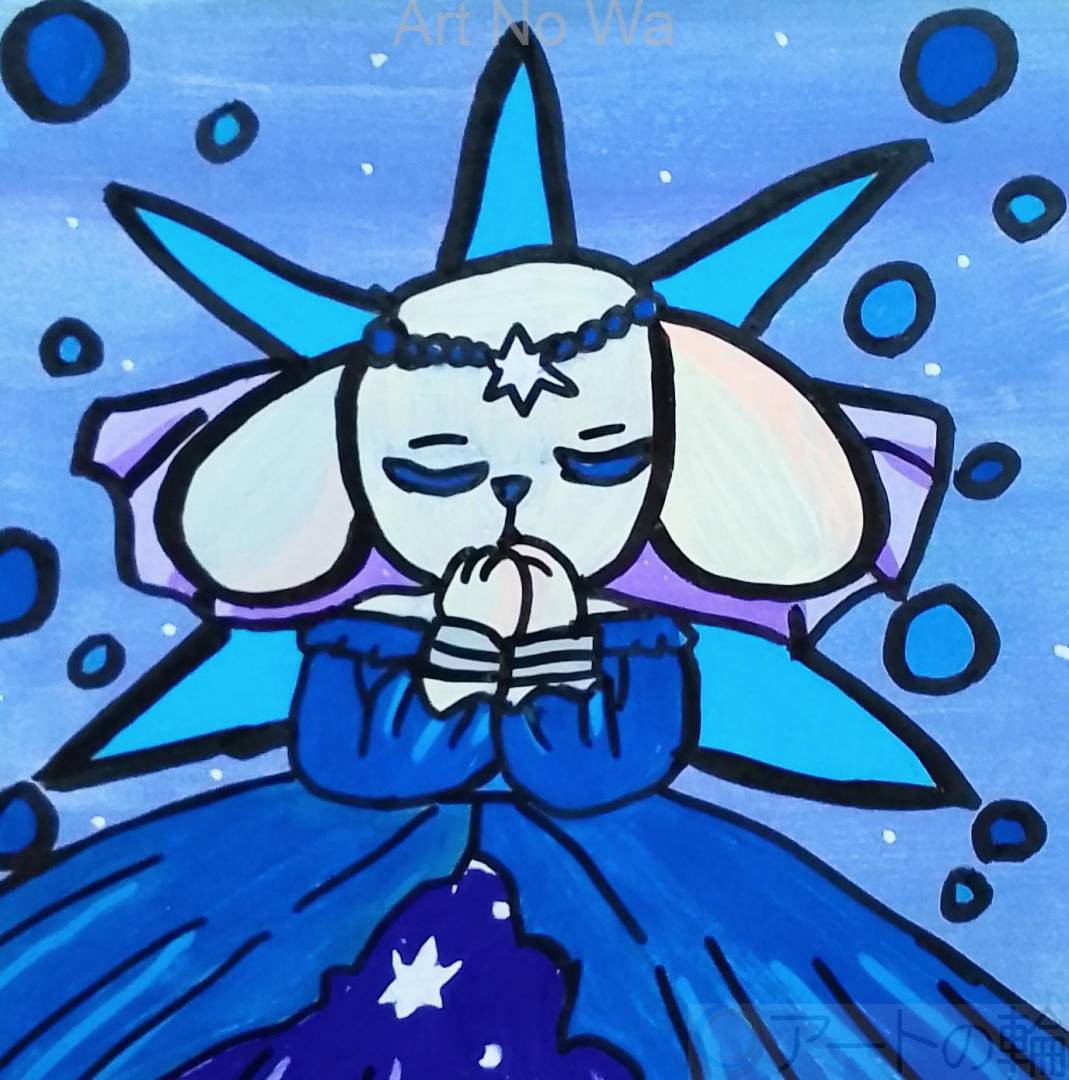 星の光を信じながら祈っている犬の女性を描いてみました。