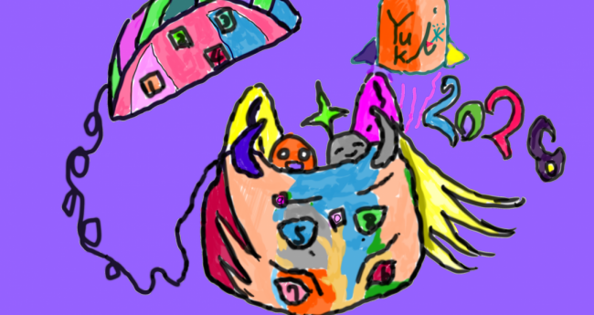 非現実,屋内,山,現在,未来,夏,季節の行事,7月,8月,オレンジ,黄色,緑,青,想像上の生き物,風景,記号,びっくり,2D
