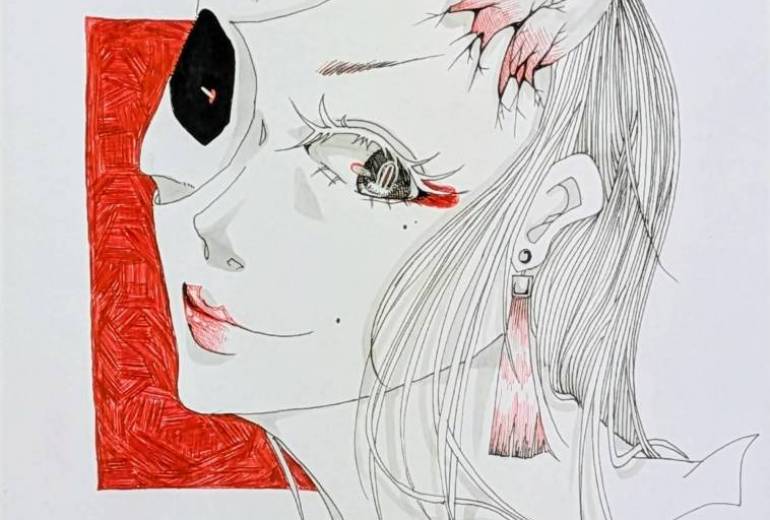 非現実,屋内,過去,赤,白,黒,人物,女性,どきどき,2D