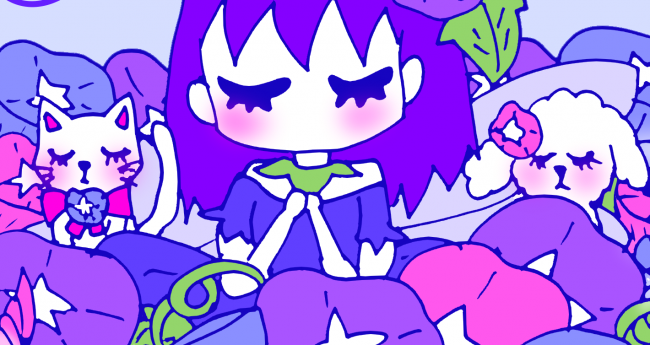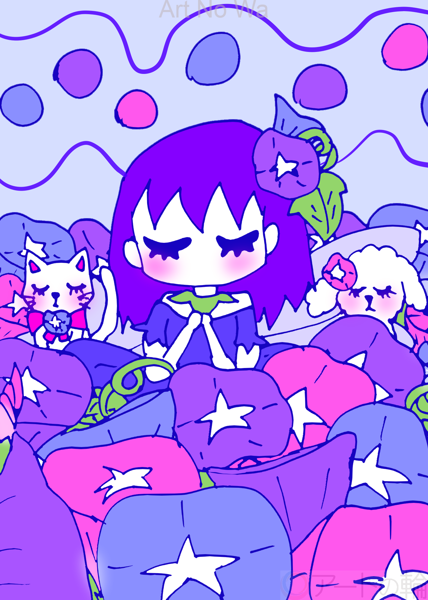 朝顔の花言葉の「淡い恋」に合わせて可愛く描いてみました。