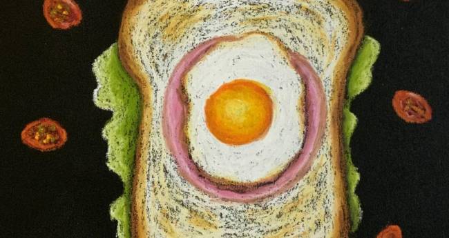 ハムエッグをのせたトースト