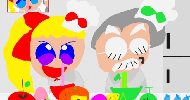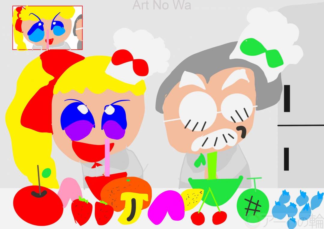 フルーツが大好きでいっぱい食べたい気持ちで描きました