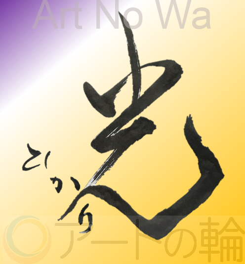 誰もが安心して暮らせるよう柔らかい光が皆に届きますように…筆文字「光」に優しい色を組み合わせました。