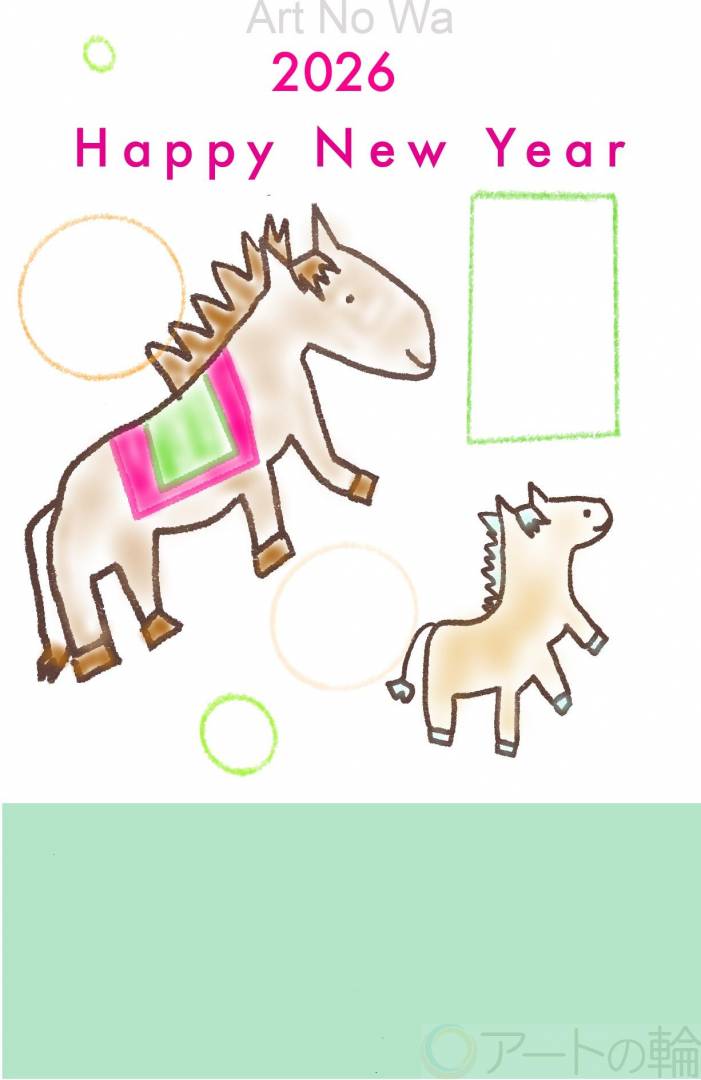 新しい年もたのしく過ごせるように、なかよしの馬の親子をかきました。