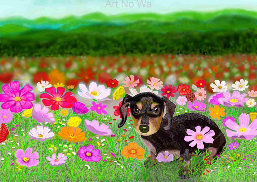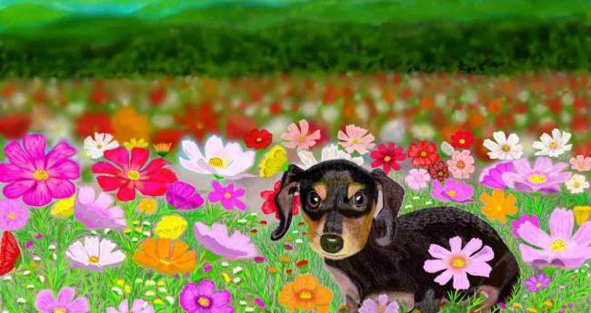 愛犬のチョコはいつも尻尾を振りながら帰宅すると出迎えてくれました。仕事で疲れていても物凄く元気をもらいました。感謝の気持ちを込めて描きました。気持ちを