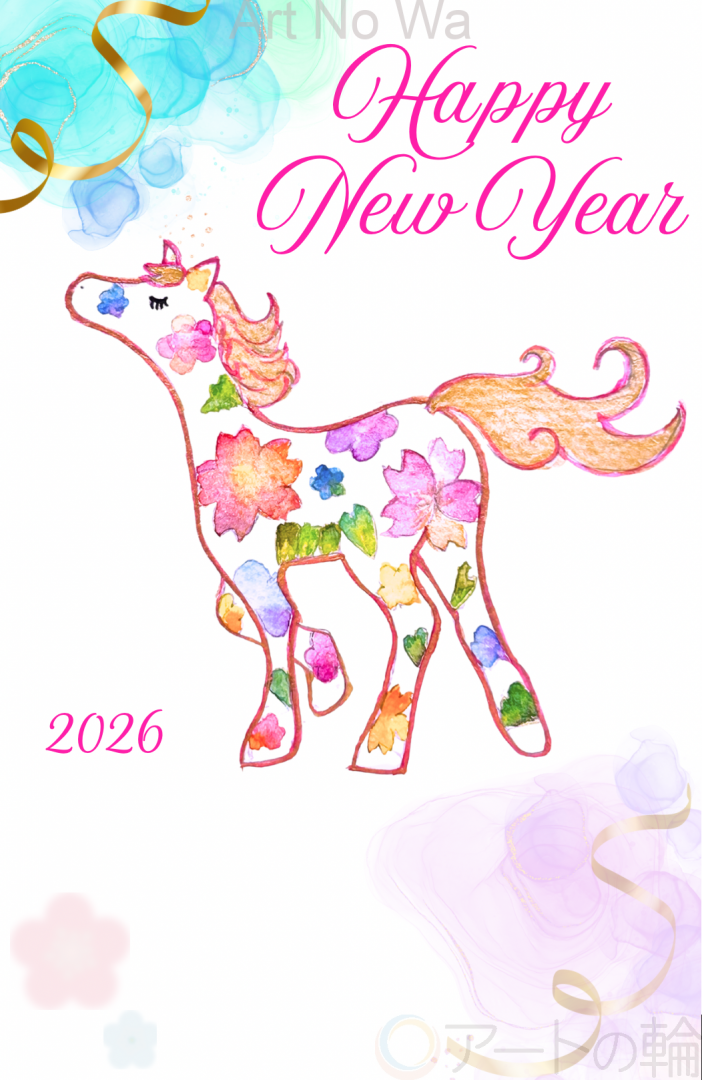 ネットスクウェアNET年賀状 ✕ 障がい者アート協会【2026年午年年賀状】 NS2026(2025)