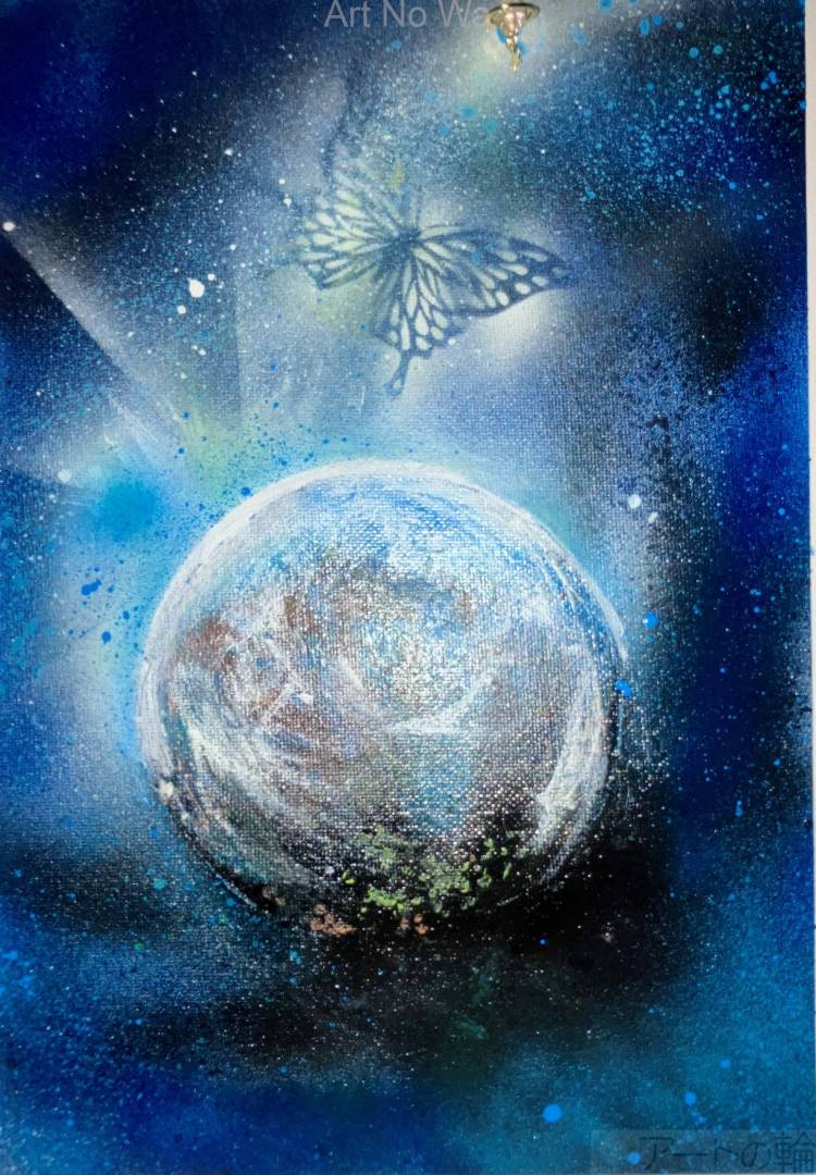 目標13:気候変動に具体的な対策を ⸻ ■作品コンセプト・想い(必須) わたしたちの地球と、小さなチョウが交わした静かな約束。 気候変動によって、命のバランスは崩れつつあります。 でも希望はまだ空にある。 一羽のチョウの羽ばたきが、未来を動かすきっかけになるかもしれません。 この絵には、小さな行動が未来を変える力になるという想いを込めました。