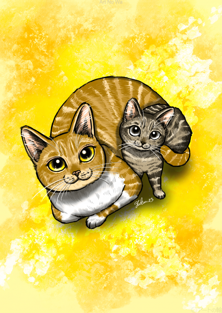 選んだテーマは「目標16 公正、平和かつ包摂的な社会を推進する」です。 今回は平和の象徴として、大好きな猫を描きました。 母猫は自分の子どもではない子でも母乳を与えたり、猫同士で社会性を集団行動を通して学んでいく生き物でもあります。 そちらをイメージして作品を制作いたしました。