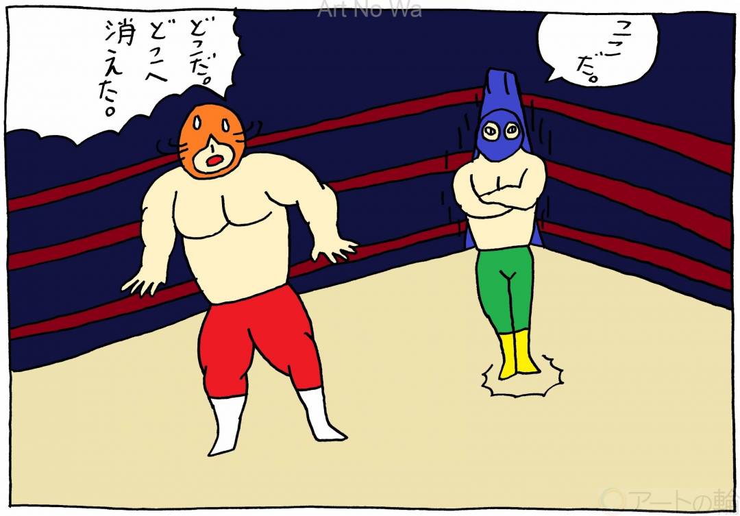 相手が素早く移動したので、どこへ消えたのかあからなくなりますね。