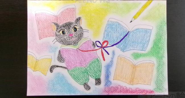 わたしのSDGs宣言は、「目標4」でございまして、教育を受けられると謂う事は、「文字が読める、そして、読書が出来る」それは、いろいろを知るのに凄く理に適って入るし、自分を知る事への助けにも為ります。1冊の本から、次々と関連性や興味を通しての広がりが見えるからでございます。それで、このイラストは、非現実ですが、読書が好きな猫さんをイメージしました。