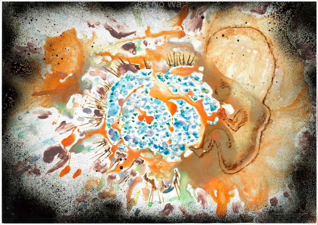 この絵はA3サイズに、フルイドアートという絵の具の色や量によって違う模様のできる技法を取り入れたり、カラースプレーも取り入れて描いていきました。誰もが可能性を持って生まれ、その可能性を広げるのも狭めるのも自分次第という思いを込めた絵です。生まれながらの環境などは選ぶことができず、生まれた時から可能性の大小はそれぞれ違いやりきれない思いも感じますが、その中でもいかにして自分の可能性を広げるか自分の在り方でも変わるかなと思います。また、生まれて持った可能性が奪われることのない平和で調和のある世界であればと思います。