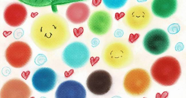 SDGSをテーマに描きました。いろいろなところで、つながっている。カラフルなスマイル。