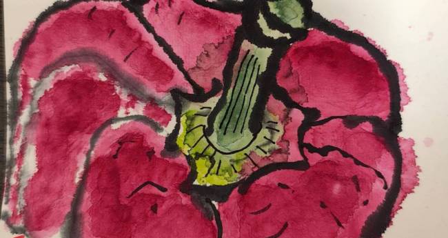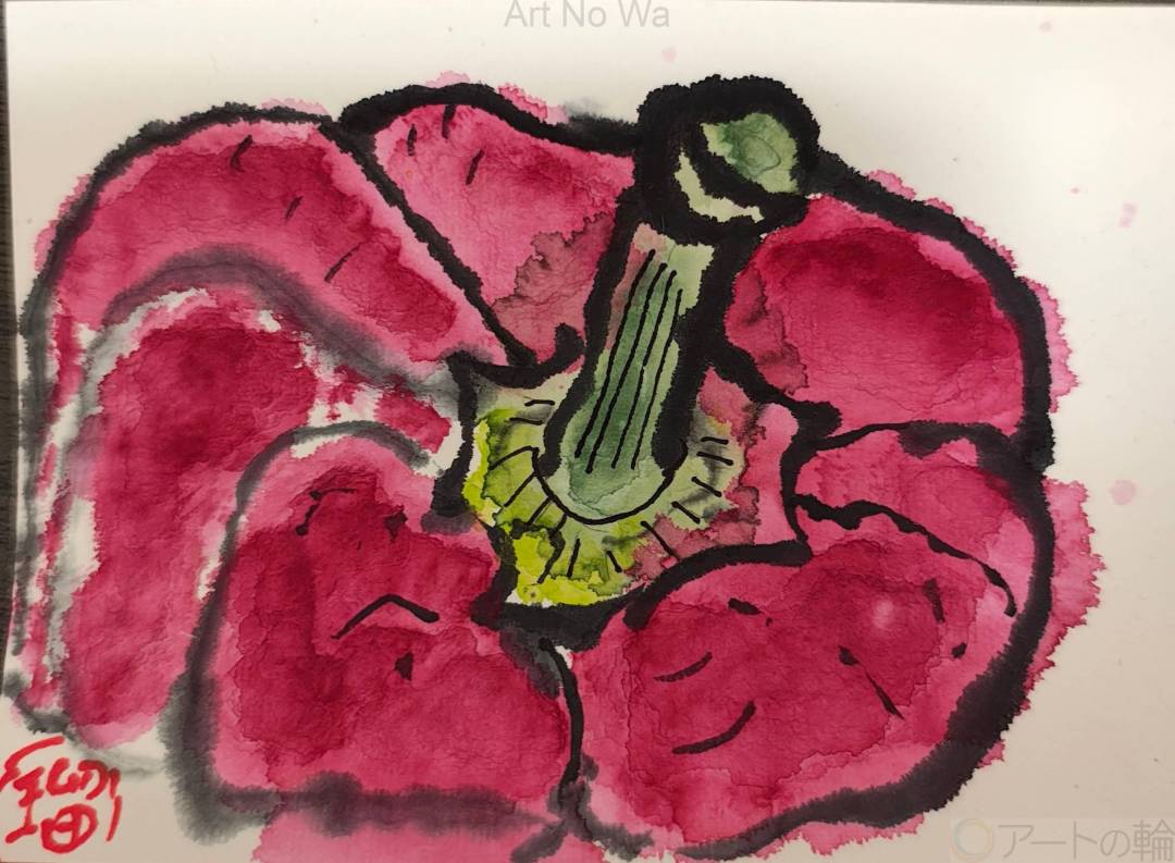 赤パプリカ 顔彩 絵手紙
