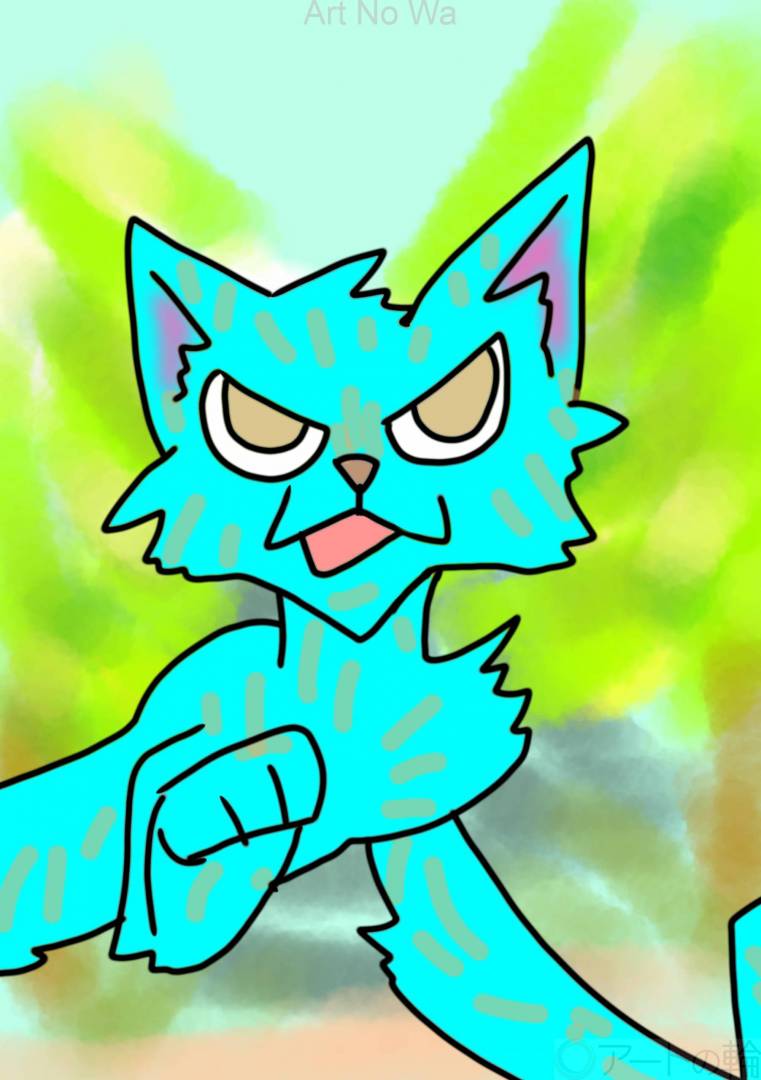 非現実,屋外,現在,緑,水色,動物,かわいい,2D