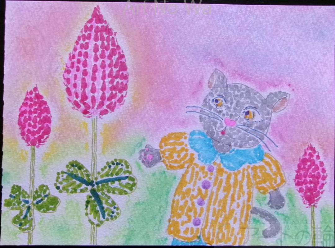 2025年5月14日に初めて、亘理町にある「おおくま花畑」にお邪魔しまして、そこで初めて観た「クリムゾンクローバー」が凄く綺麗で、圧巻でございました。で、擬人化の猫さんが、キュンキュンしながら観てるのをイメージし、部分的に初めて点描風に描いて見ました。(画用紙のサイズが、約B6と小さいですけど。)