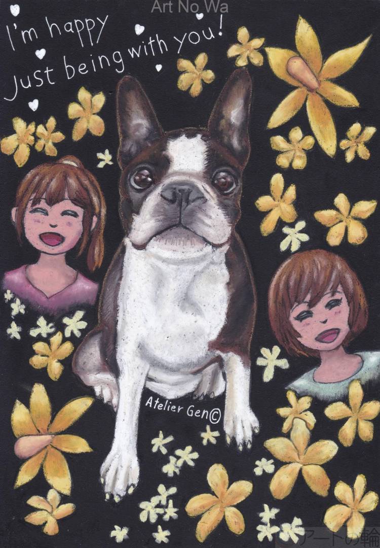 依頼主の愛犬フレンチブルドックをオイルパステルで仕上げました。