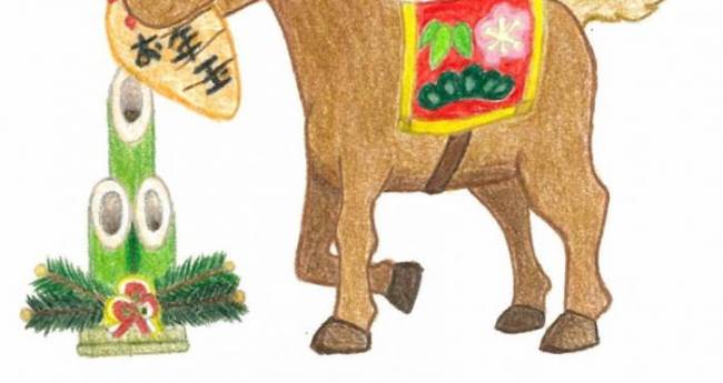 子馬さんがお正月を楽しくお祝いする様子を描きました。