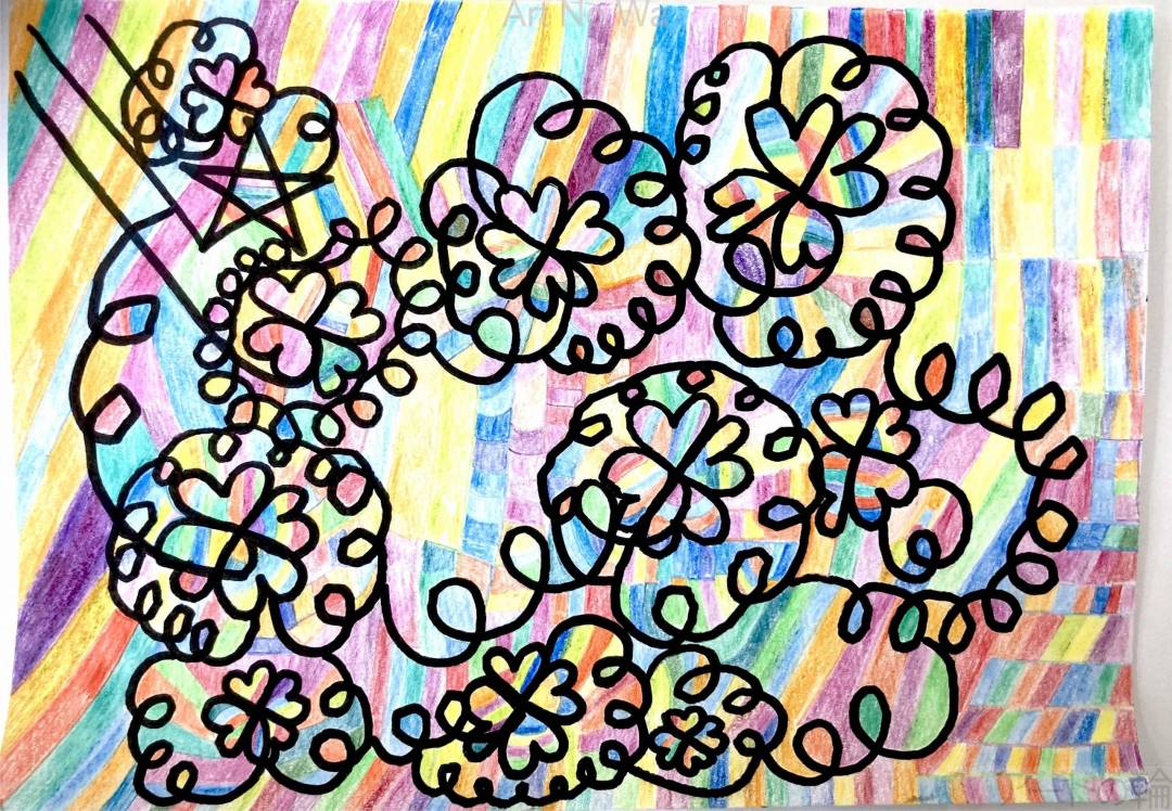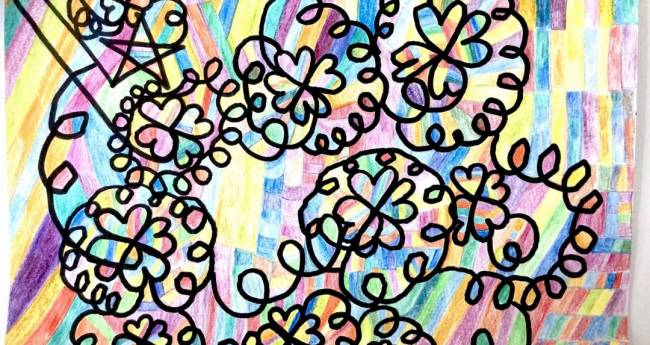 色の鮮やかな空間をイメージして描きました。自然の生きることをたくしながら描きました。