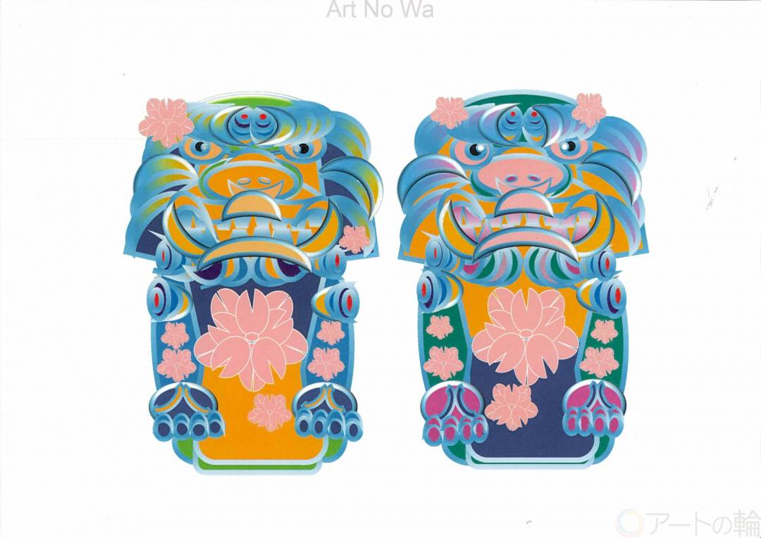 狛犬と八重桜をExcelの図形で描きました。千近くの工程で出来上がっています。図形の組み合わせ、線の太さや色のぼかしを1個づつ作ったり、変えたりしました。最後に厚手の光沢紙にコピーしているのでA4サイズの原画があります。