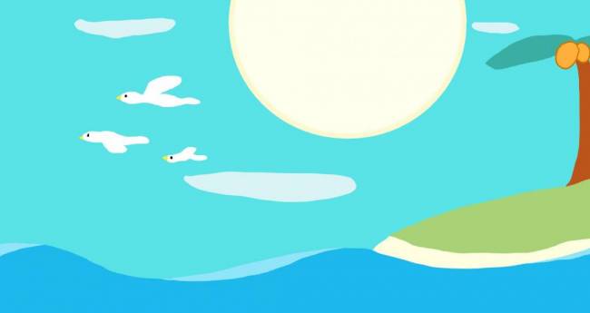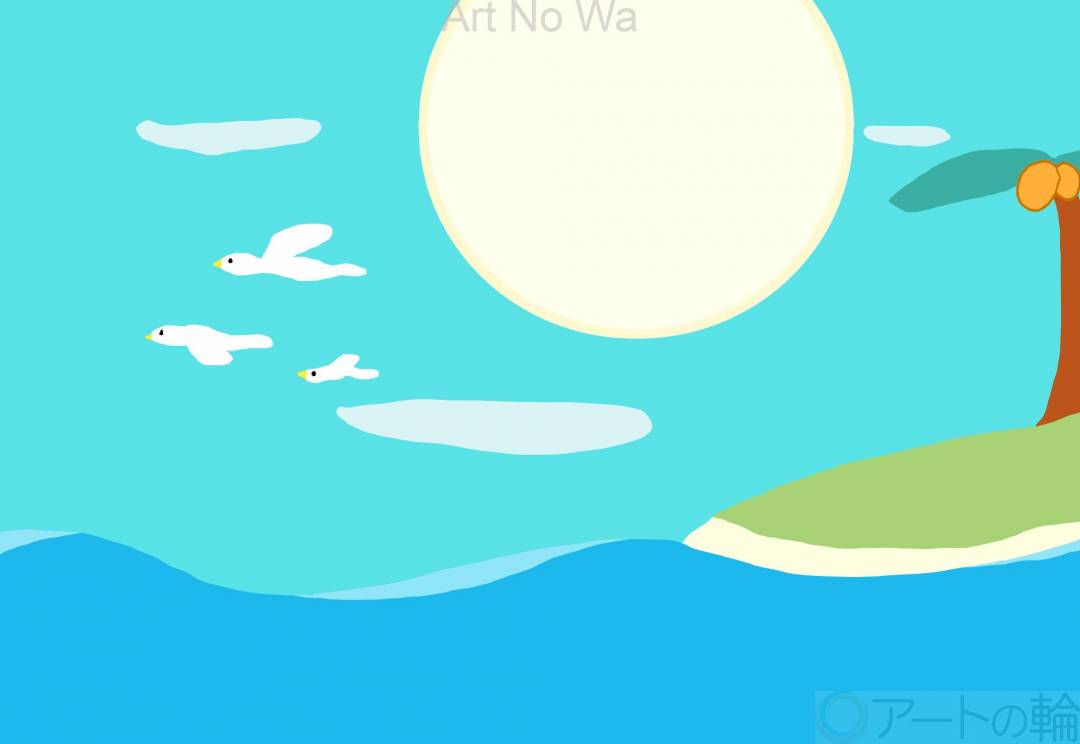 現実,屋外,自然,海,夏,7月,8月,黄色,緑,水色,白,動物,風景,明るい,たのしい,かわいい