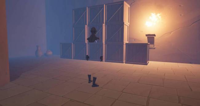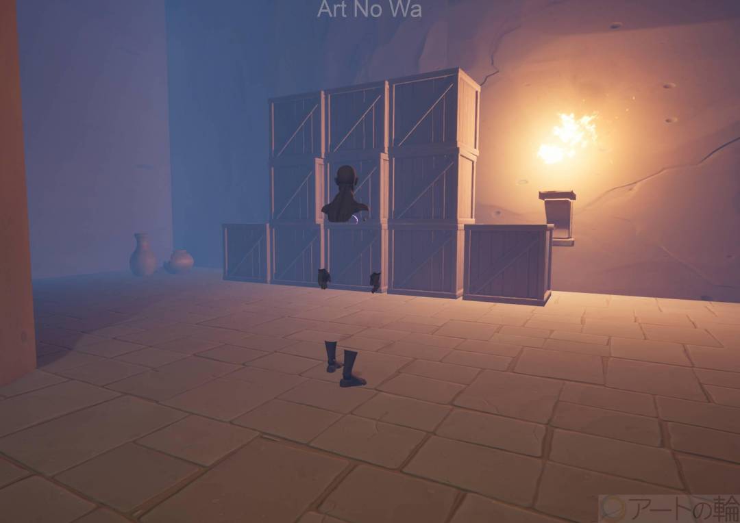 屋内,太古,オレンジ,青,人物,建造物,ホラー