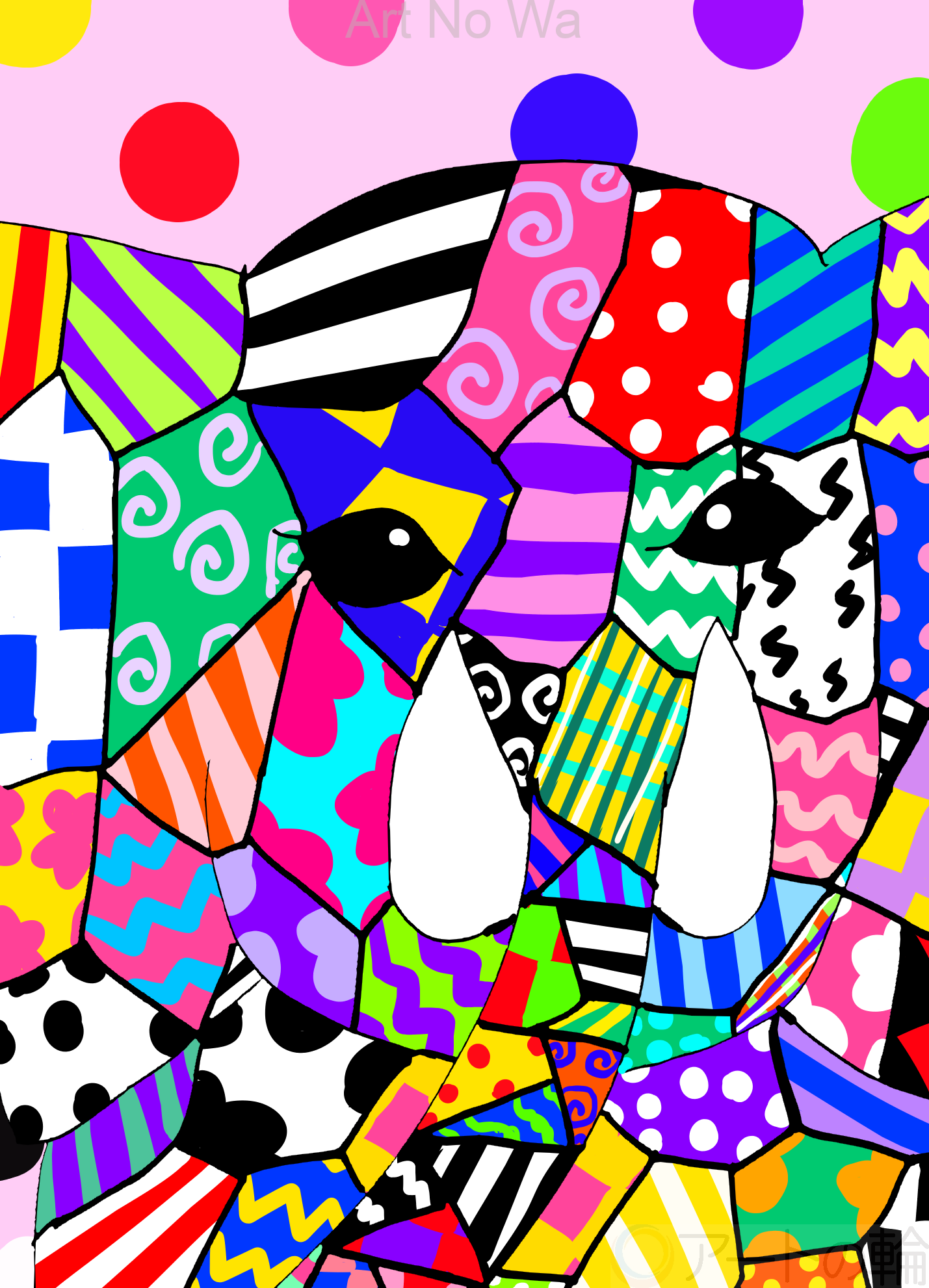 大きなゾウに色んな模様を沢山色んな色で描いてみました!