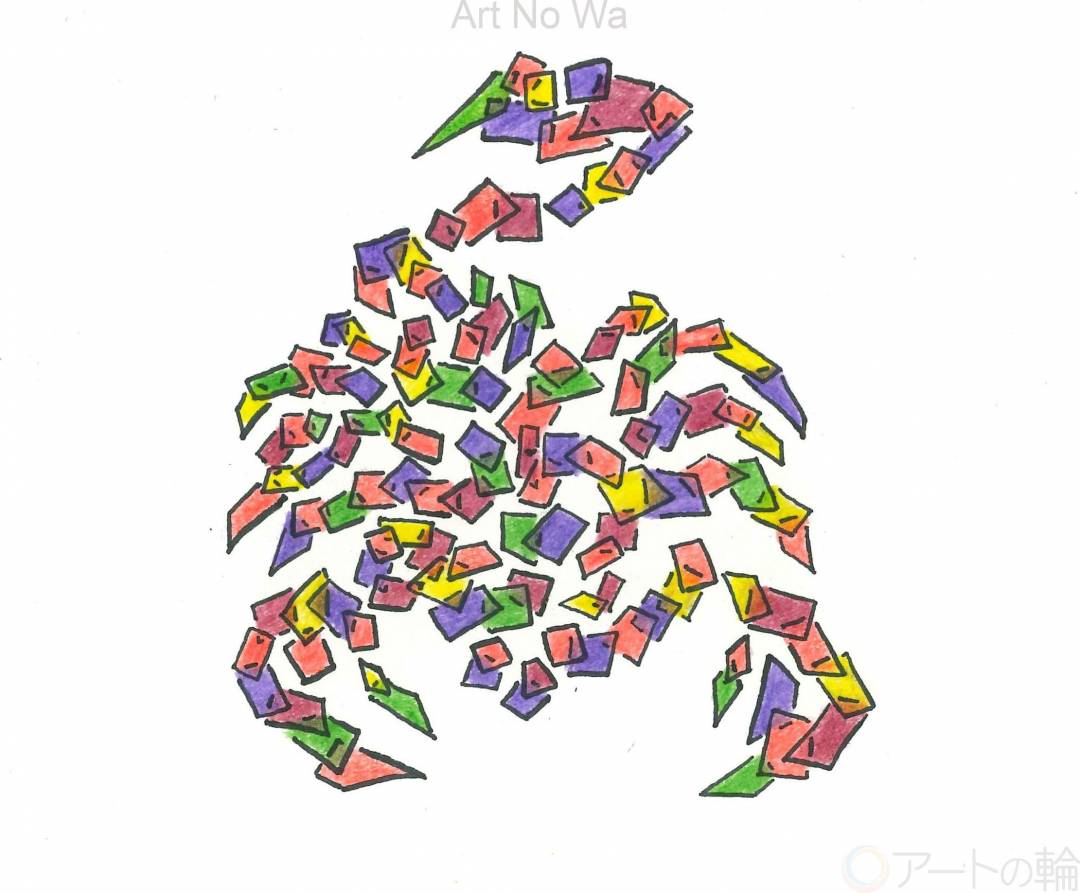 四角形を見ていた。それを回したり動かしたりしていると四角形で虫を構成したくなった。