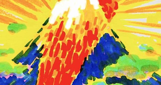現実,非現実,屋外,自然,山,空,現在,未来,春,冬,正月,季節の行事,1月,赤,オレンジ,黄色,青,植物,風景,明るい,たのしい,かわいい,わくわく,どきどき,びっくり,2D