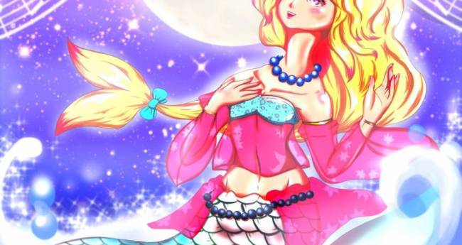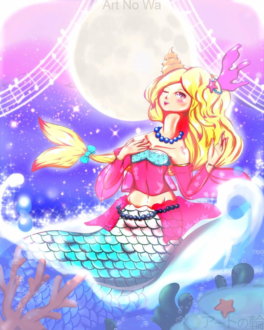 屋外,海,夏,オレンジ,黄色,水色,青,植物,想像上の生き物,風景,星,女性,明るい,暗い,かわいい,どきどき,2D