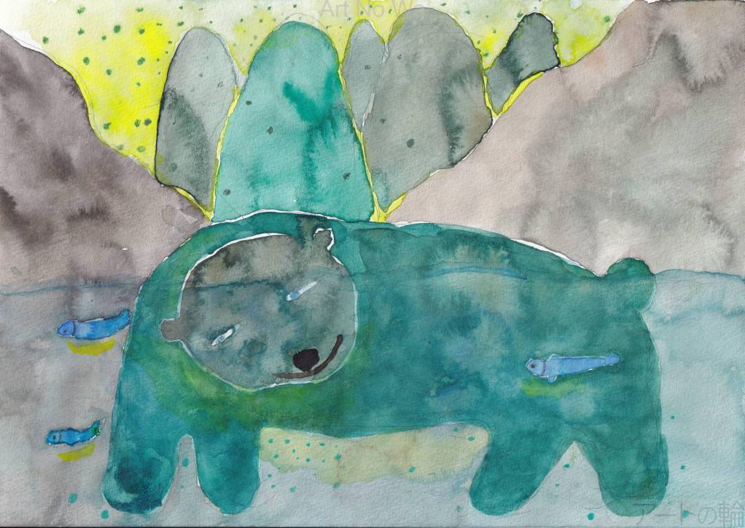 冬眠から目覚めたクマ。よく確かめるとからだじゅう苔むしていた。あれー!お思ったけど、それより、魚…空腹を満たそう