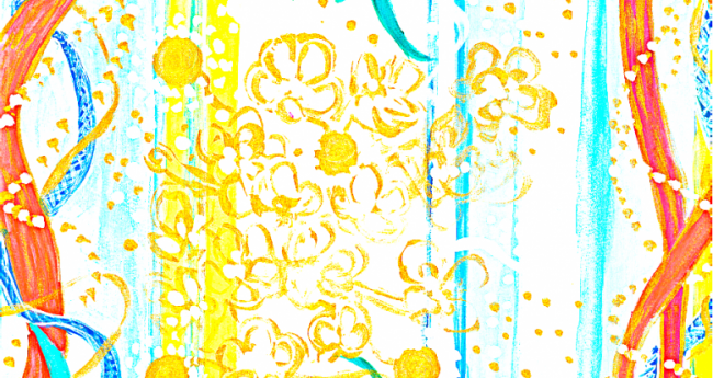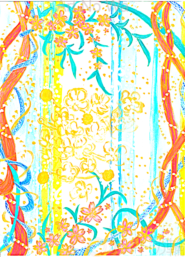 着物の柄をイメージして描きました。日本の佳き日に彩りを添え続けている着物。女性を更に美しく彩る着物を、デザインしていきたいと思います。■画像では茶色に見えていますが、実物は金墨を使用しているので華やかです。