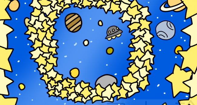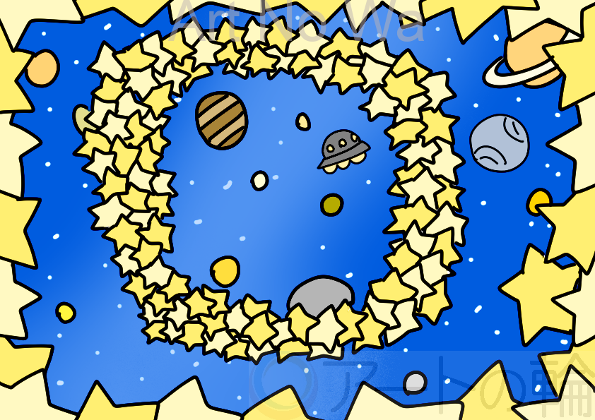 宇宙を潜り抜けるような沢山の星のリングを描いてみました。