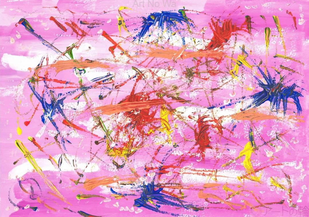 カマキリがカマでらくがきをしたのを想像して描きました。細い線は割りばしの先を使って描いています。