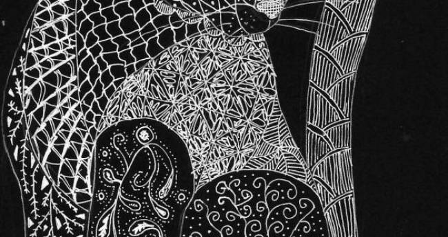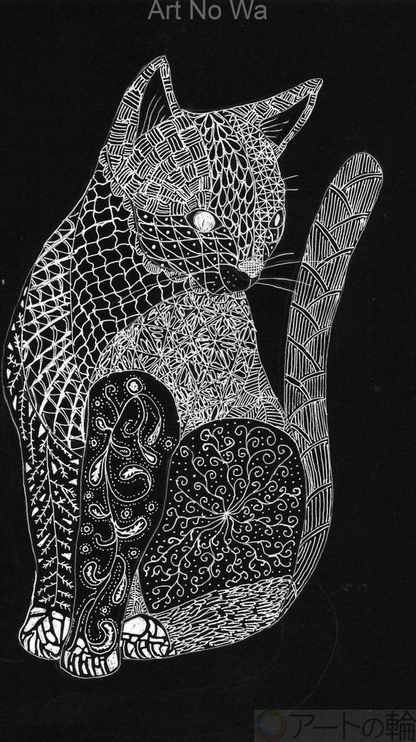 猫の絵。三枚目です。「猫2」に引き続き、黒地に白で猫を描いてみました。様々な模様で猫を彩りました。猫の絵は引き続き描いていきたいです。