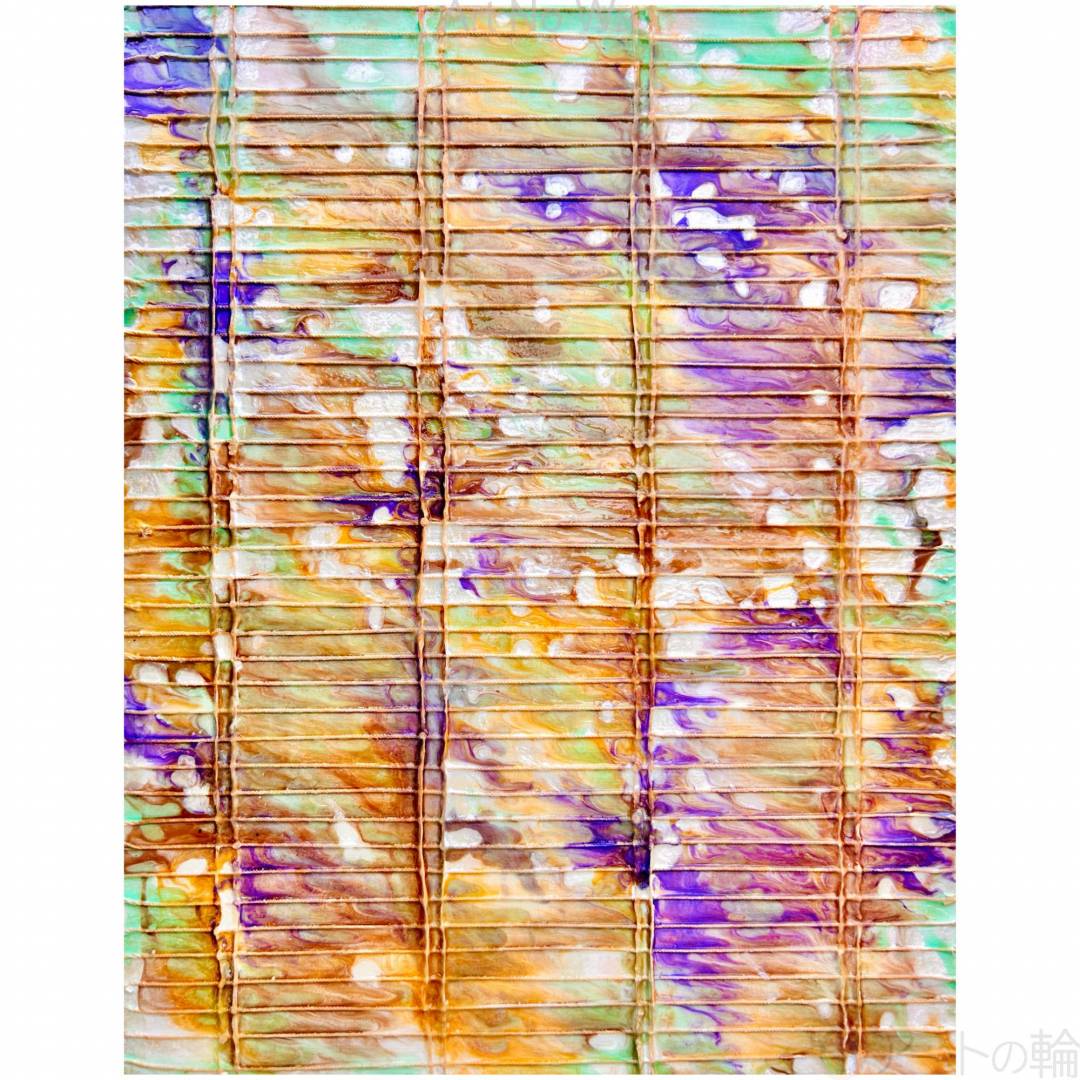 脈々と積み重ねられていく系譜や経験、命についての音源を抽象的に描いた。 画材:アクリルブロック紙、リキテックス、ストリンキングメディウム、水干、岩絵具