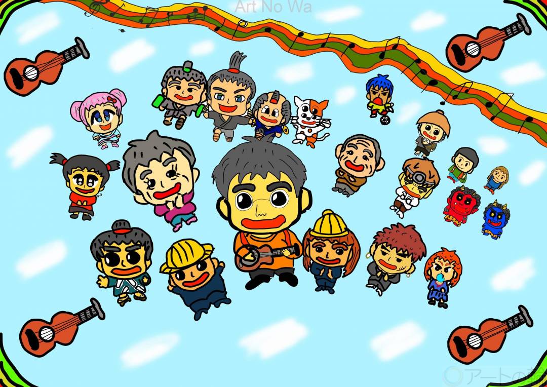 昨年から新しい趣味が出来、ウクレレが新しく趣味に加わりました。その新しい趣味のウクレレを登場させ、オリジナルキャラも沢山登場させました。僕が引いたウクレレにあわせてオリジナルキャラが踊ったり自由に過ごしています。
