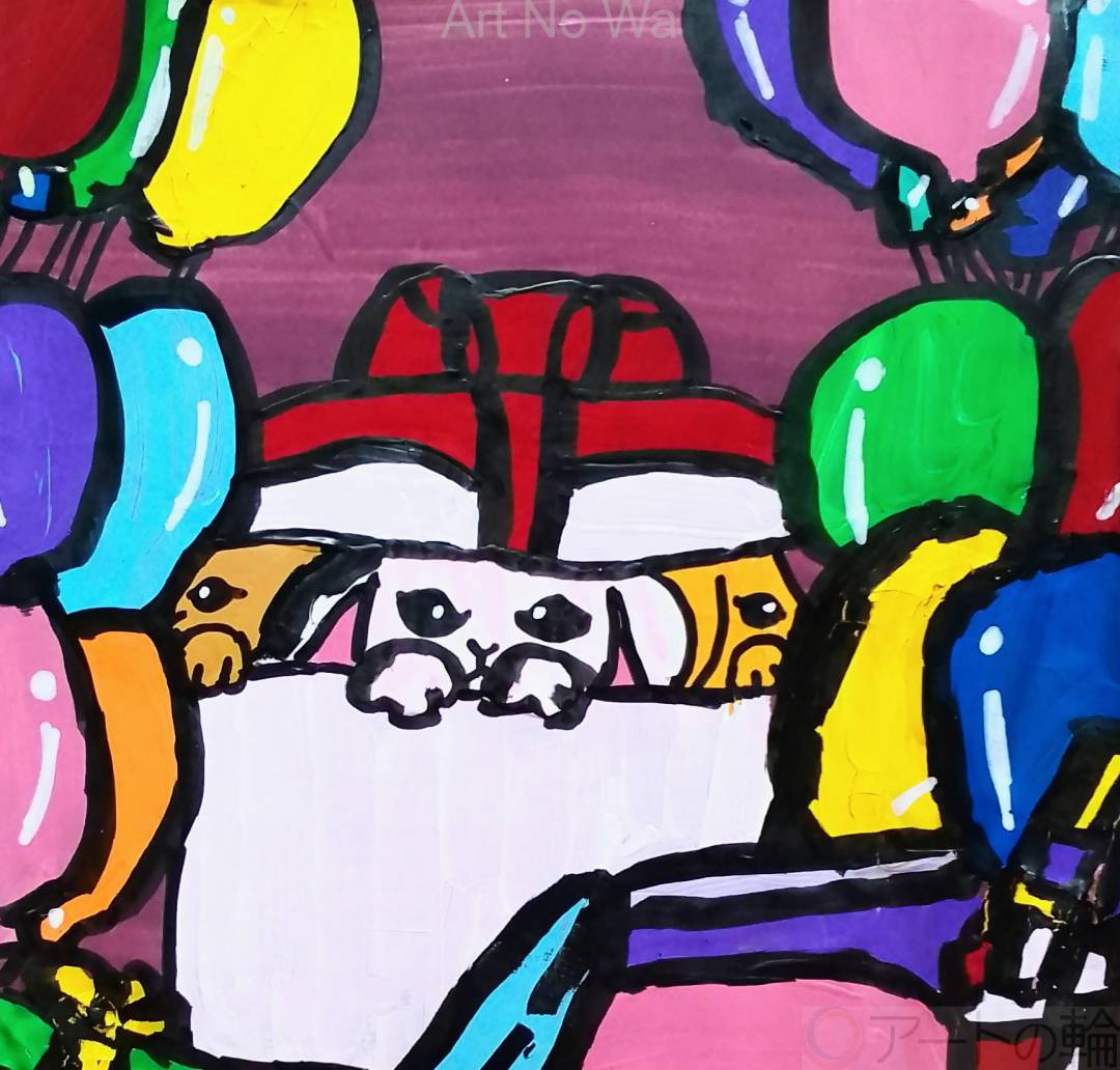 サプライズのためにプレゼント箱の中に入っている三匹の兎を描いてみました。