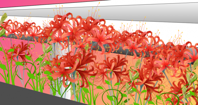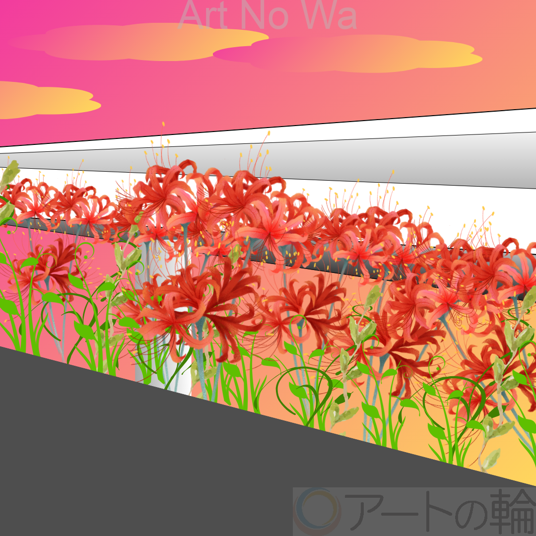 ガードレールの脇に咲いていた彼岸花を写真に収めました。その写真を、Canvaで再現してみました。