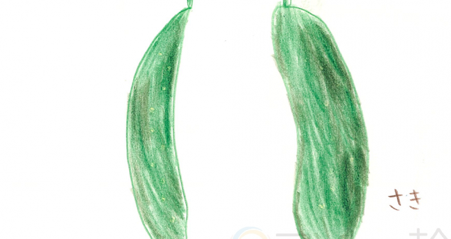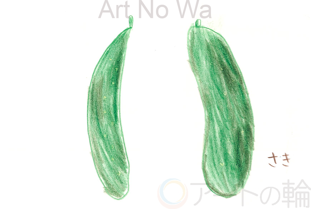 採れたてのきゅうりの絵を描きました。緑色を単色にするのではなく複数の緑色を重ね塗りしたところを工夫しました。