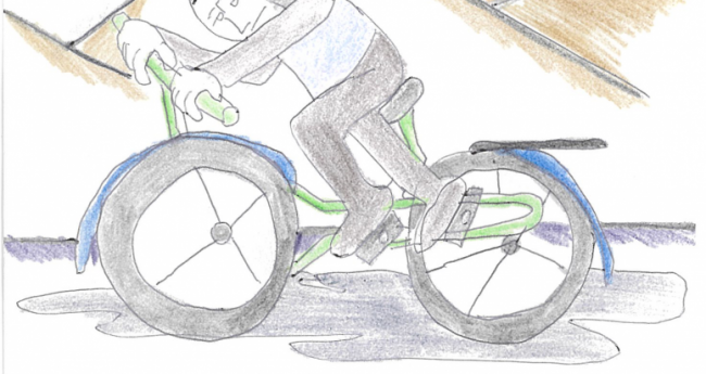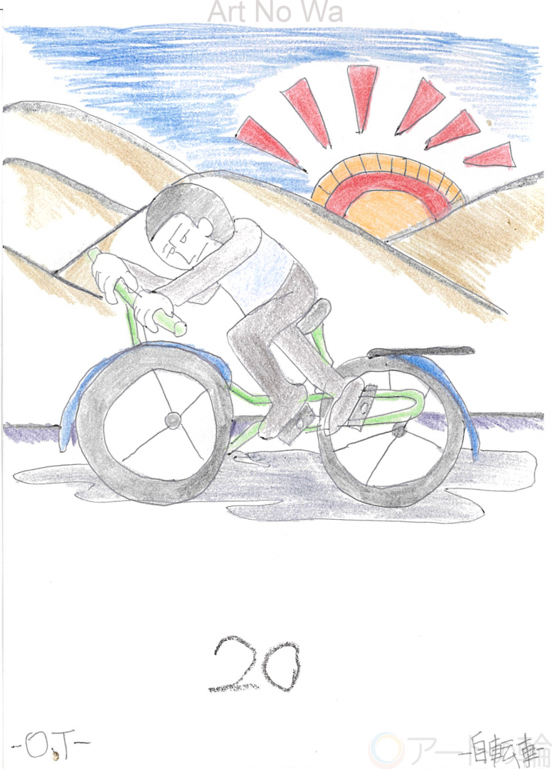 必死で自転車をこぐ人。